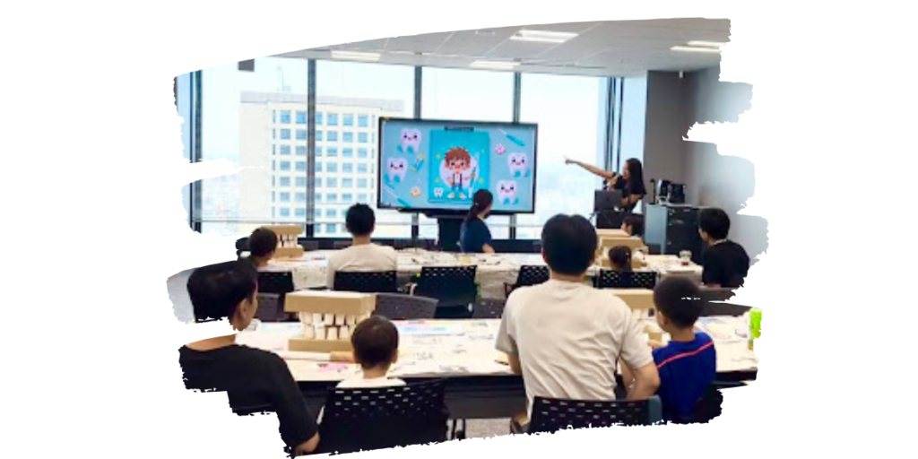 お口のテーマパークのオリジナルアニメ「ケンタくんの歯の大冒険」を観てもらい、お口への興味関心をかきたてます!