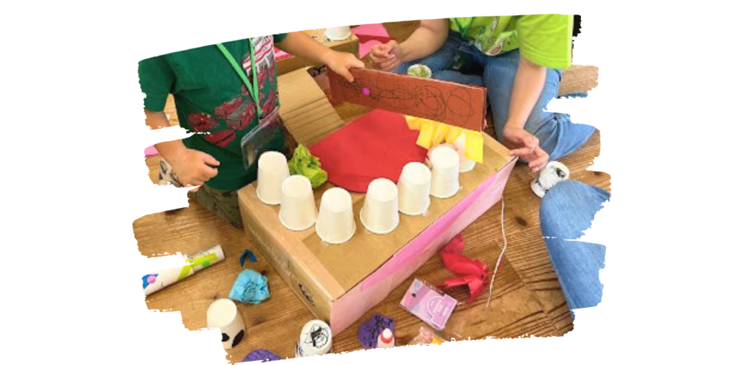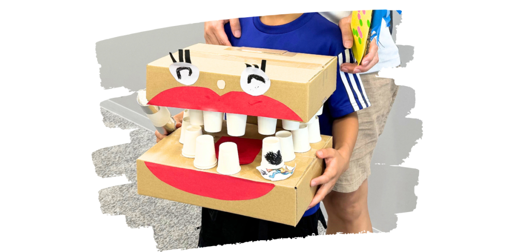 段ボールや画用紙などを使ってお口のおもちゃを工作してもらい、